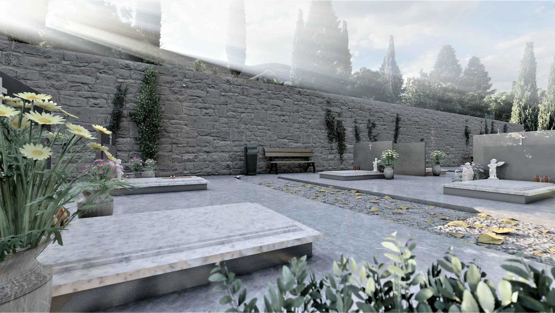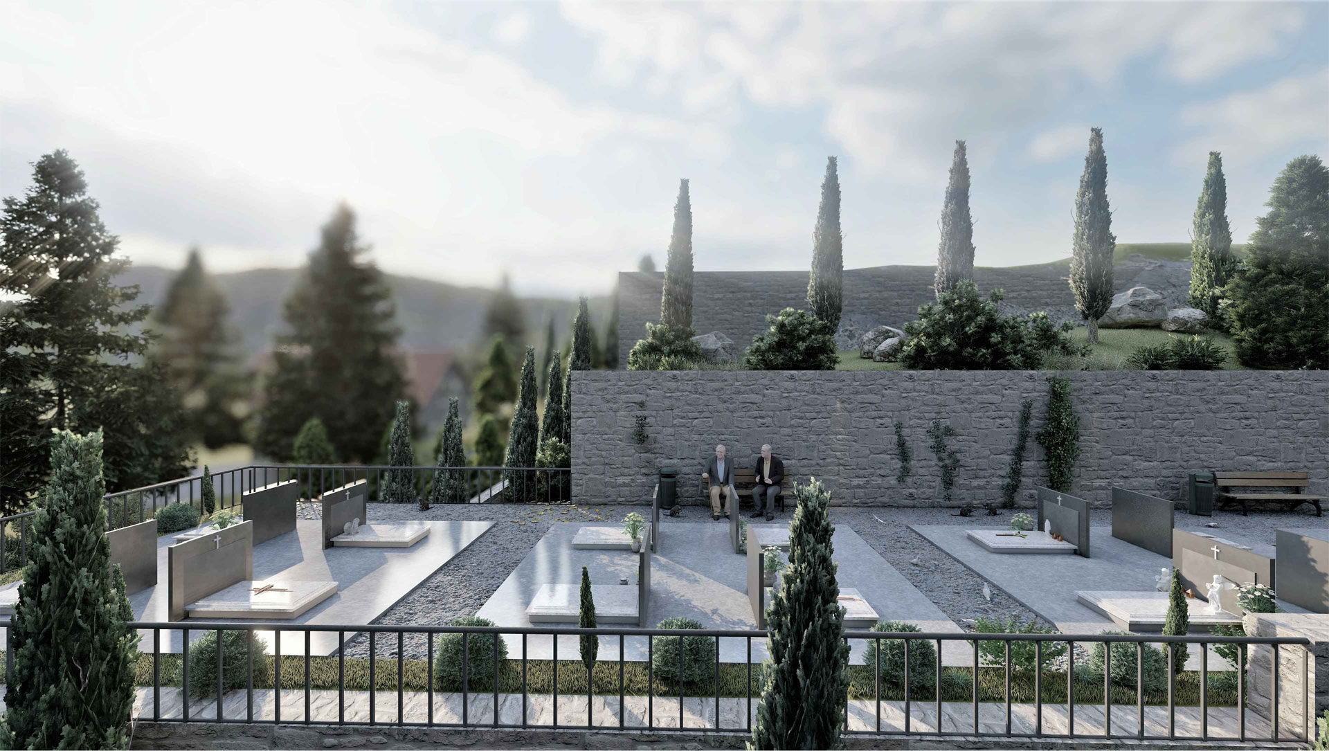 Projektni zadatak je primarno spriječiti nastanak mogućeg klizišta (visinska razlika između puta ispod starog groblja te platoa starog groblja je u prosjeku 17m) kojeg smo osigurali AB potpornm zidom,te do njega i postojećeg starog groblja smjestili nove grobnice.